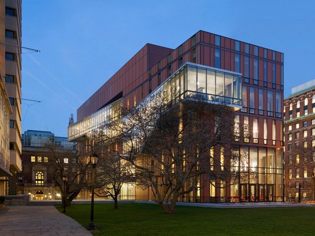 Located on Broadway, the Diana Center unites landscape and architecture, interior and exterior in a seven-story building with ascending double-height glass atria and an unfolded glazed staircase that bring in natural light and eliminate visual boundaries between the College and the city. Carving a diagonal void through the building, the slipped atria create views through diverse program spaces and visually connect Lehman Lawn to the upper floors of the building and the green roof. The facade—composed of 1,154 clear and color integral glass panels—translates the brick and terra cotta of the surrounding neighborhood into a luminous, energy-efficient exterior.