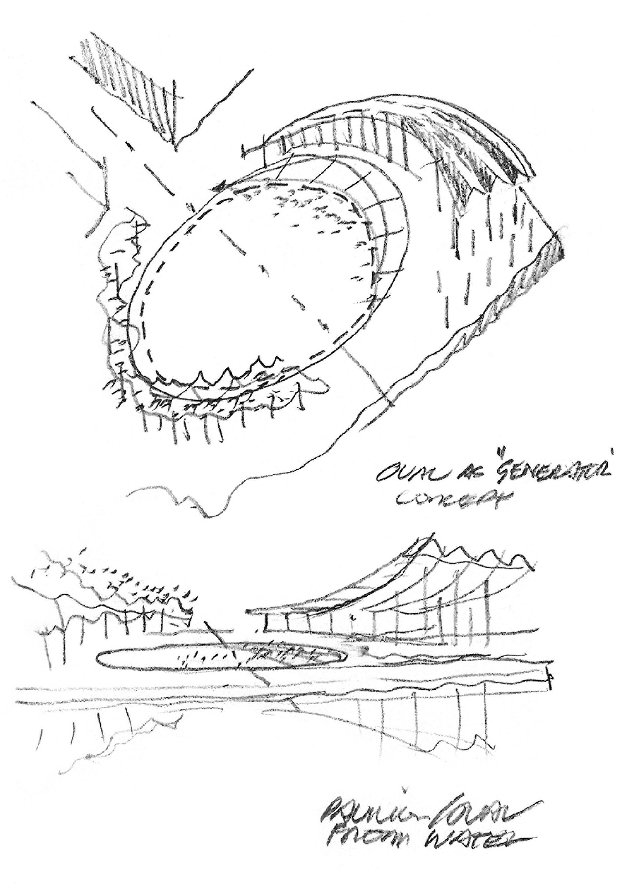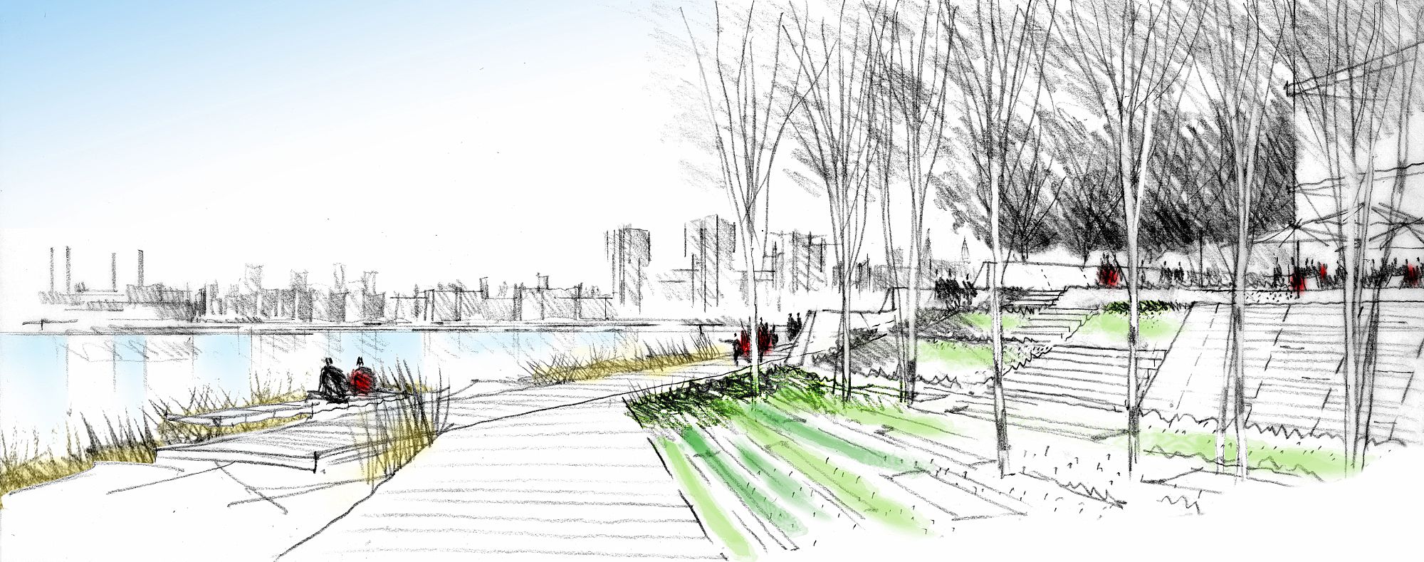 The site is waterfront and city, gateway and sanctuary, blank slate and pentimento. These readings suggest an approach to the landscape that enhances what is unique about the site, while framing a new multilayered identity as a recreational and cultural destination. New open spaces with connections to the surrounding communities provide access to the water's edge and spectacular views of the Manhattan skyline.