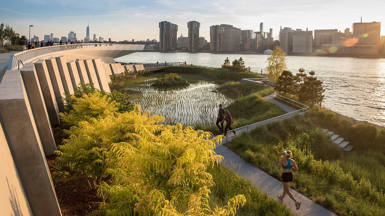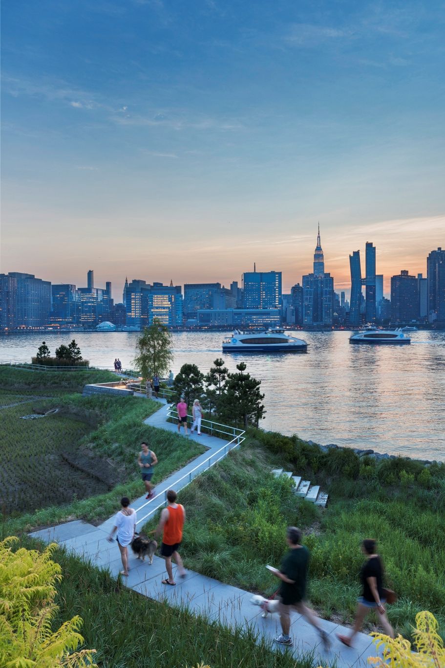 Hunter’s Point South Waterfront Park transforms 30 acres of post-industrial waterfront into a program-rich public space that simultaneously acts as a protective perimeter for the neighboring residential community.