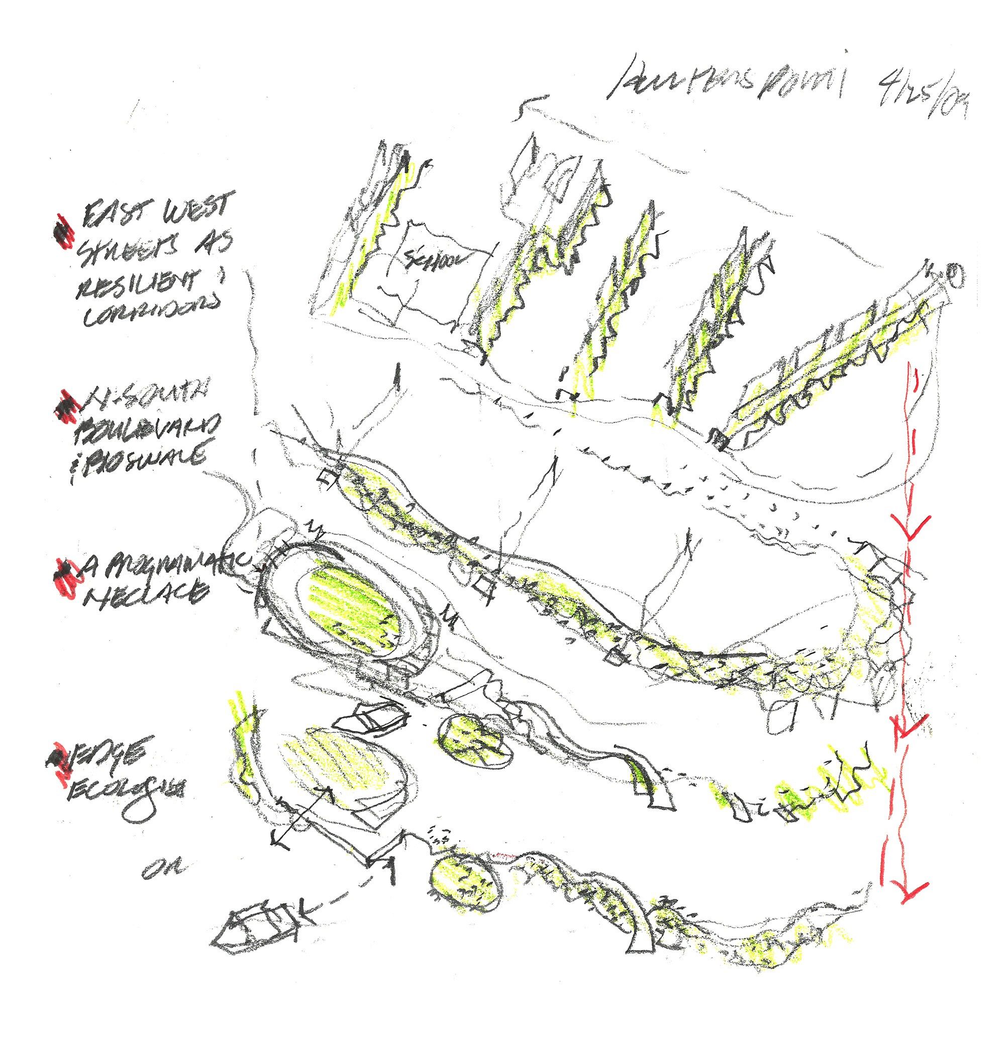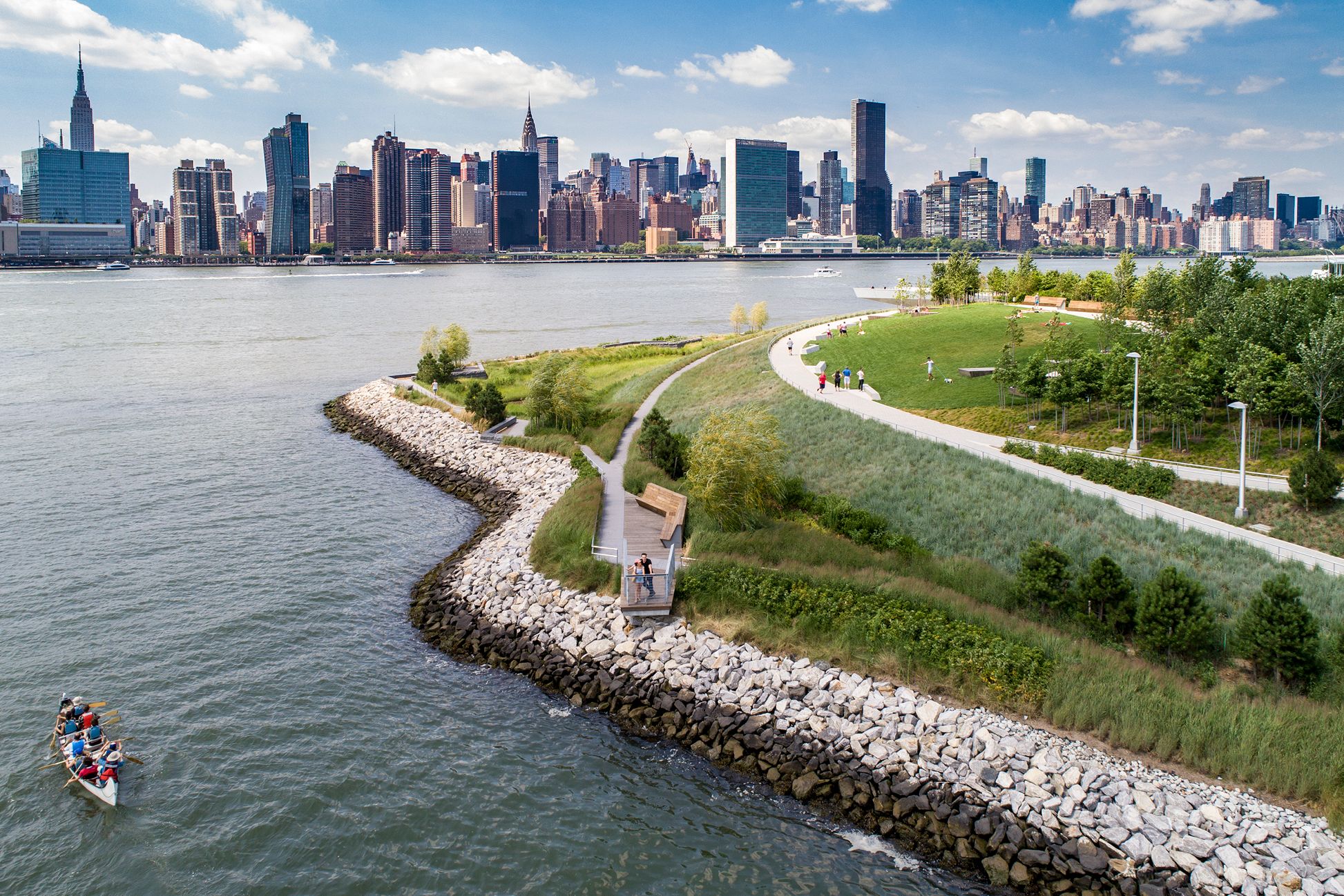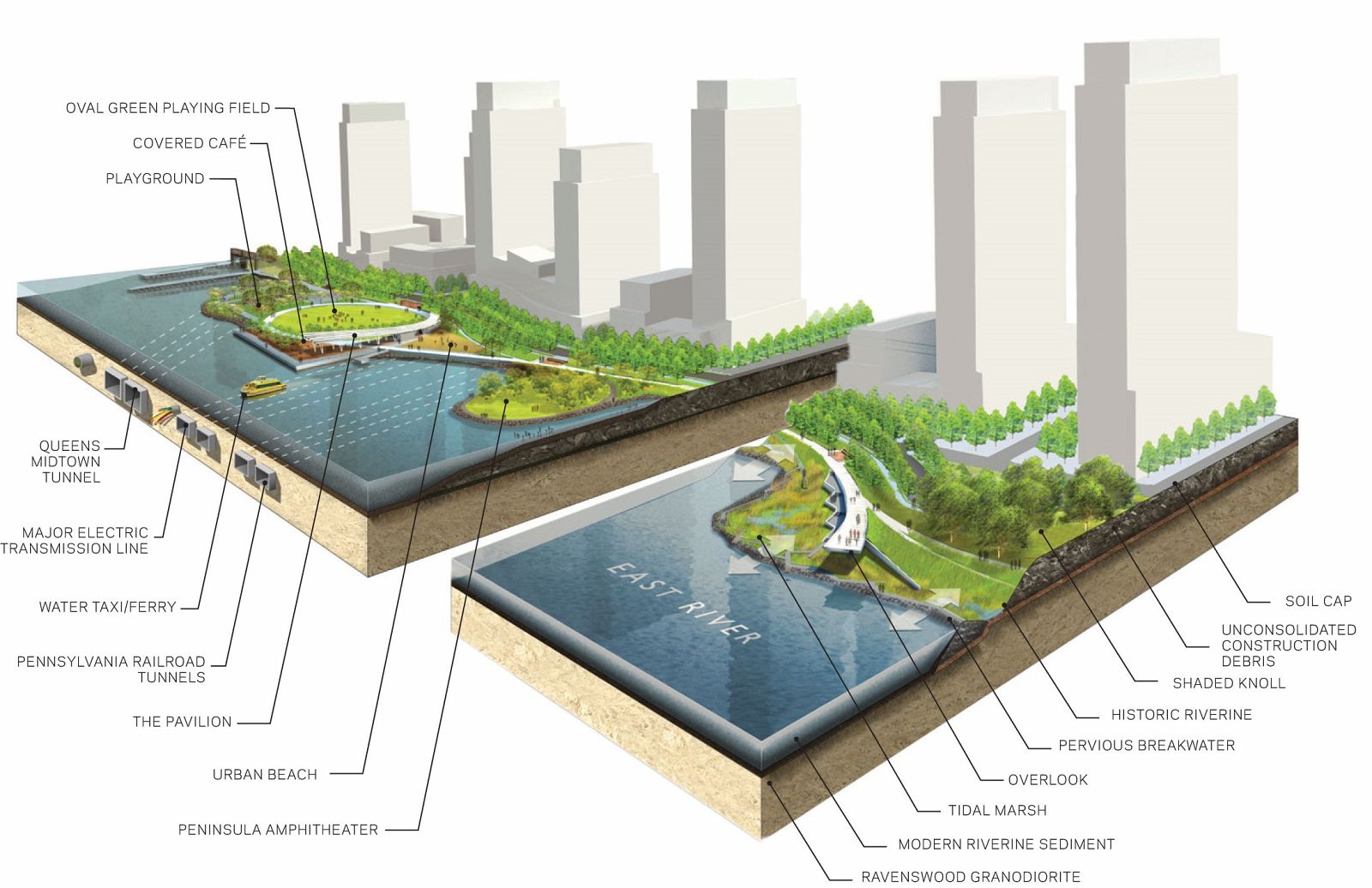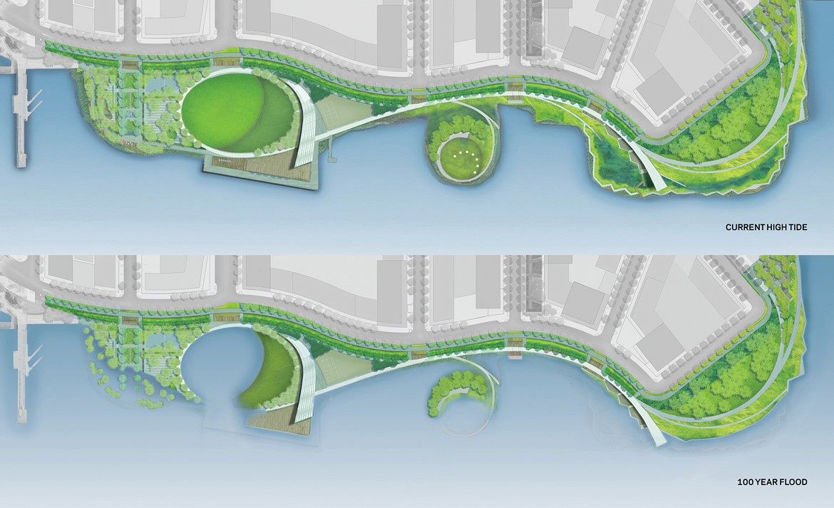 "Therefore, the waterfront park is not merely a public amenity, though it is certainly that, with a dog run, ball courts, playground, sand lot and a cafe. It is also a first line of defense for what is to be a densely developed residential quarter.”