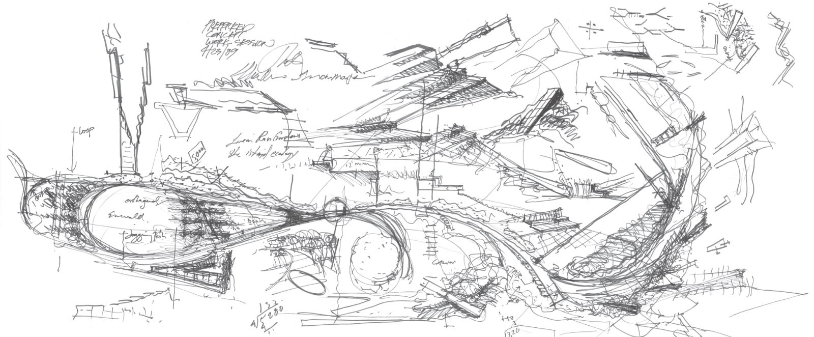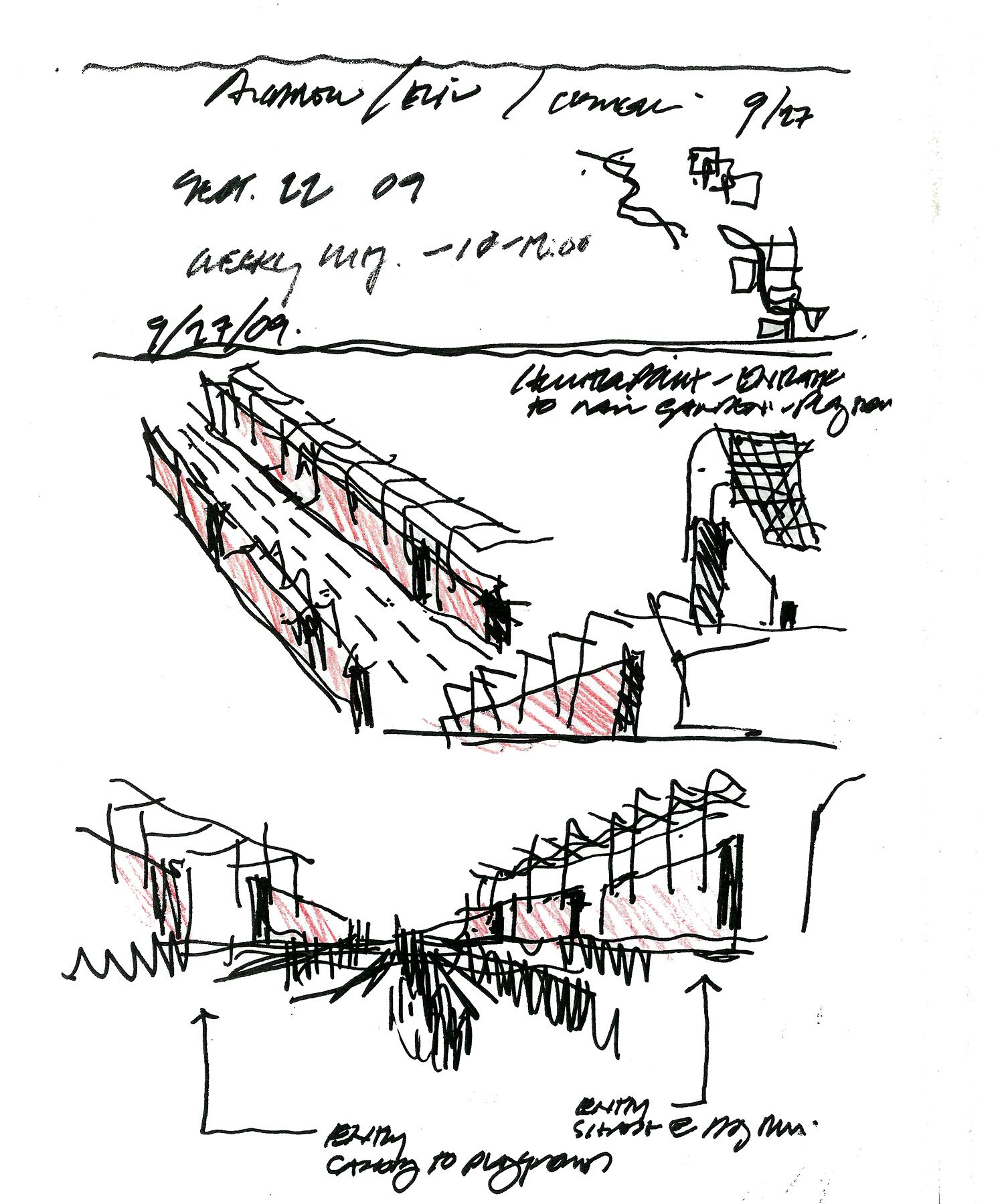 "A defining characteristic of Weiss/Manfredi’s work from the very start has been the interaction between architecture and landscape. Rather than follow the modernist tradition of envisioning architecture as pure objects in the landscape, they tend to prefer to fuse the two together—except in their case, the landscape is just as artificial as the architecture that conjoins it.”