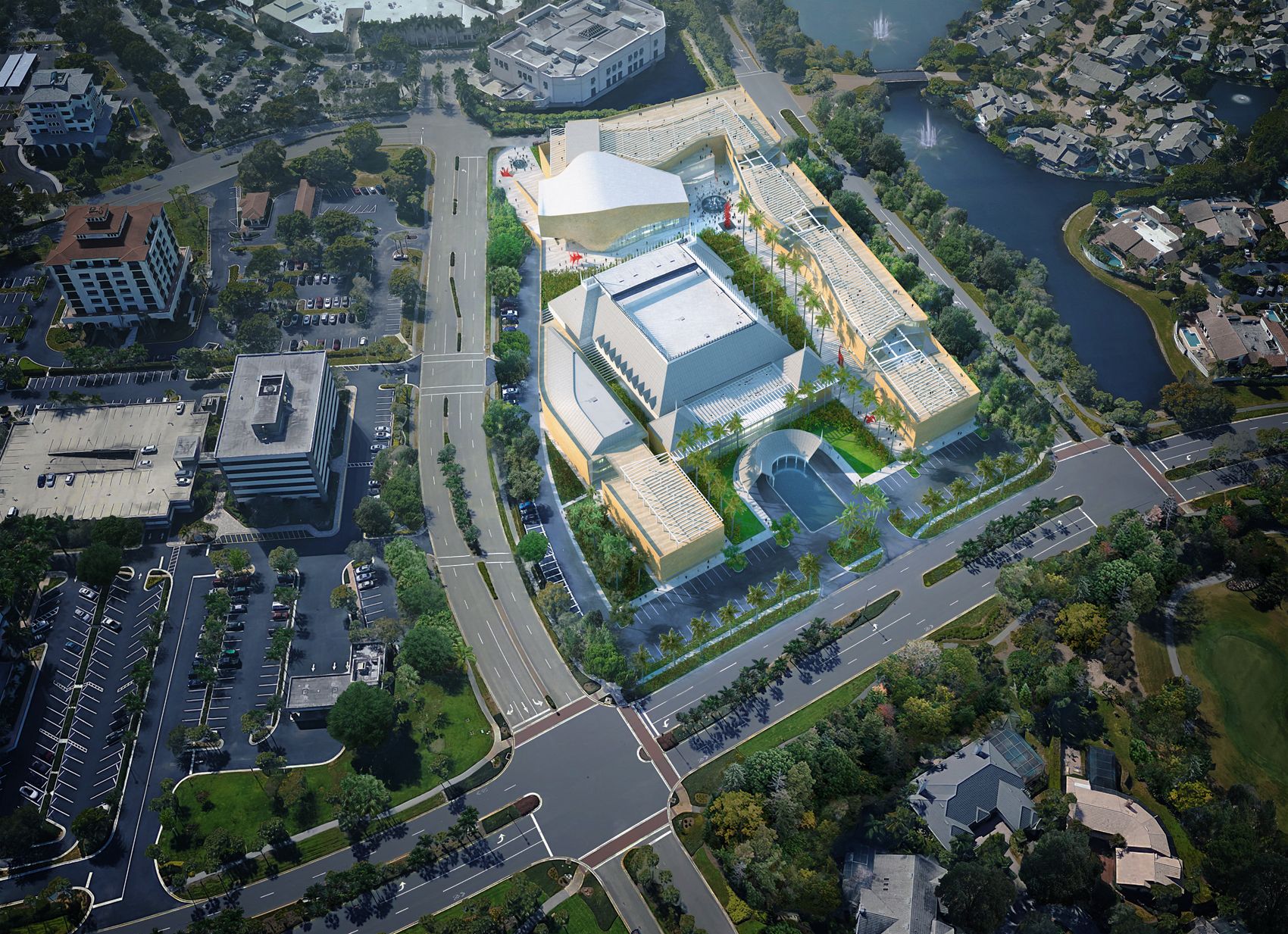 Our design for the 8.5-acre site unites a disconnected set of existing buildings and ad hoc spaces to present a welcoming cultural campus. Drawing inspiration from its coastal setting, the new master plan creates open-air connections between the landscape and institution. Visitors to Artis—Naples arrive upon a reimagined collection of landscaped courtyards and clear pedestrian routes.