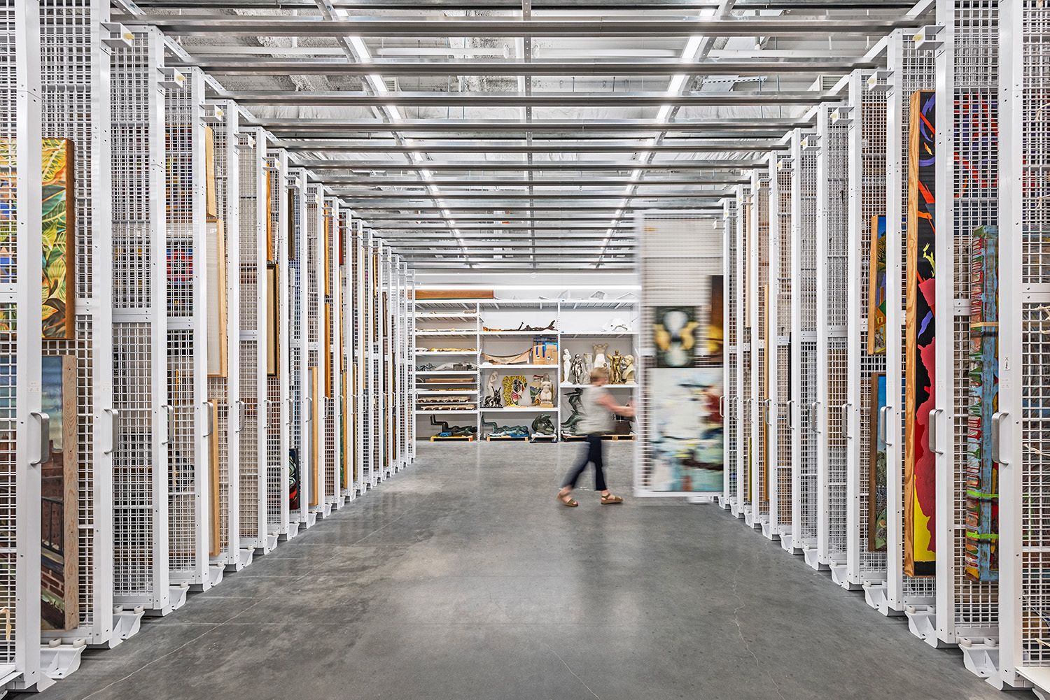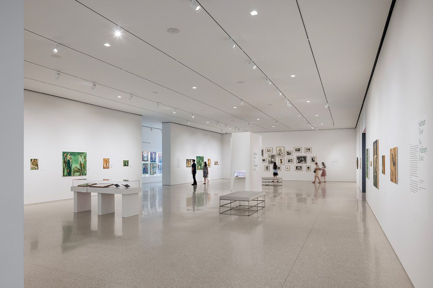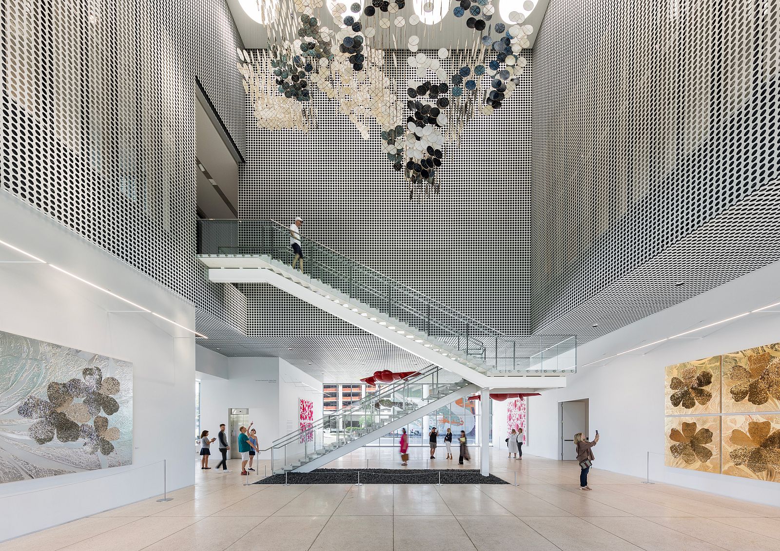 The renovation also triples the gallery and exhibition spaces. On the upper levels of the museum, the extensive storage areas were consolidated to enable the creation of 7 vibrant, new galleries, expanding the museum’s original 14,800 square feet exhibition and collection space into 43,000 square feet, including a flexible multimedia gallery and sculpture gallery. The renovation also includes the creation of a new art storage loft and rejuvenated offices spaces.