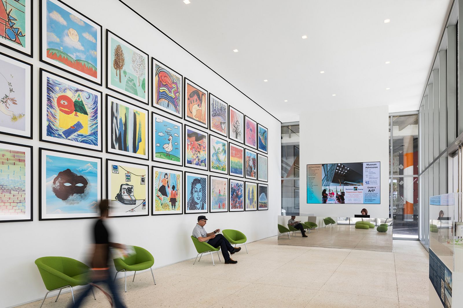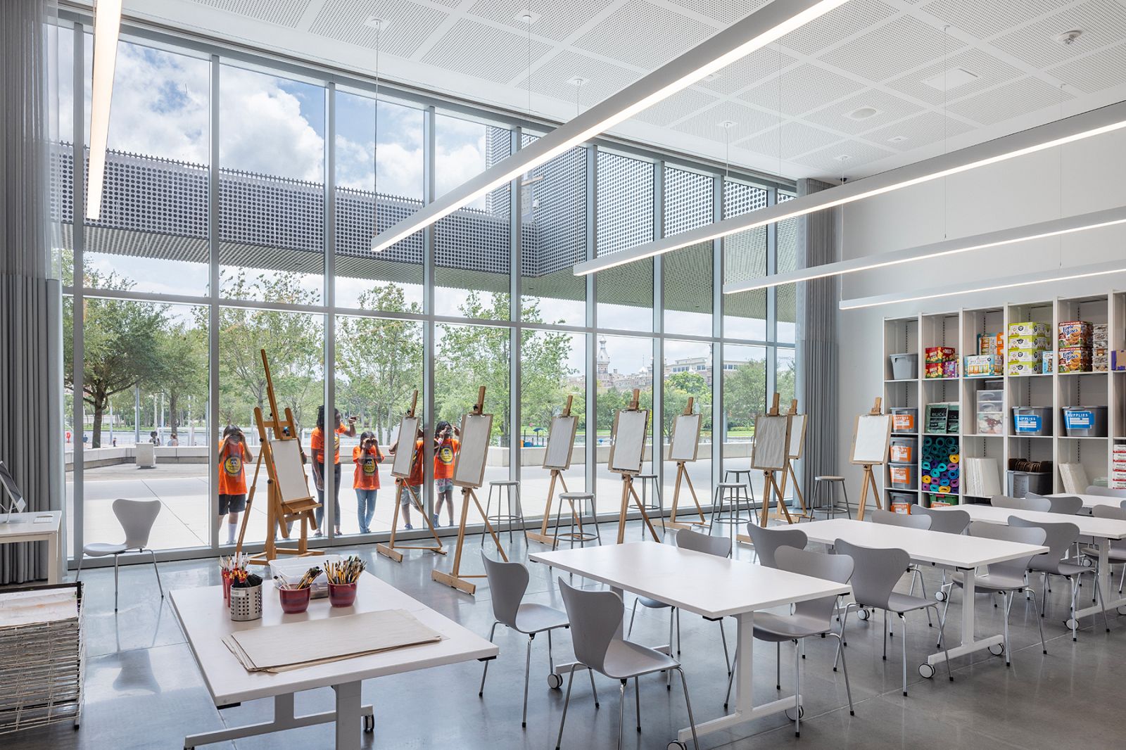 By removing the opaque ground floor glass façade and transforming underutilized storage spaces, the creation of the Vinik Family Education Center expanded the existing education spaces from 1,400 square feet to more than 8,000 square feet. The new center includes an arts lobby, four classrooms, orientation space, and a ceramics kiln.