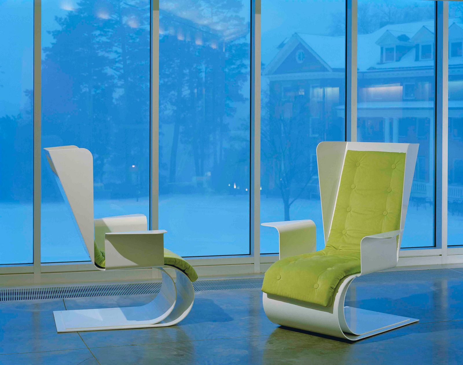 We like to work with models, both digital and analog, intuitively bending and folding paper. In the case of the Smith college lounge chair, the design came out of the process, by folding and unfolding paper. The result was almost like origami, a very simple cut-out that had a sense of movement in it and a simplicity of form. The design was the translation of the intuitive desire for thinness and movement and simplicity, combined with the strength through the prototype of the project. Hence, you see the double C-shape.