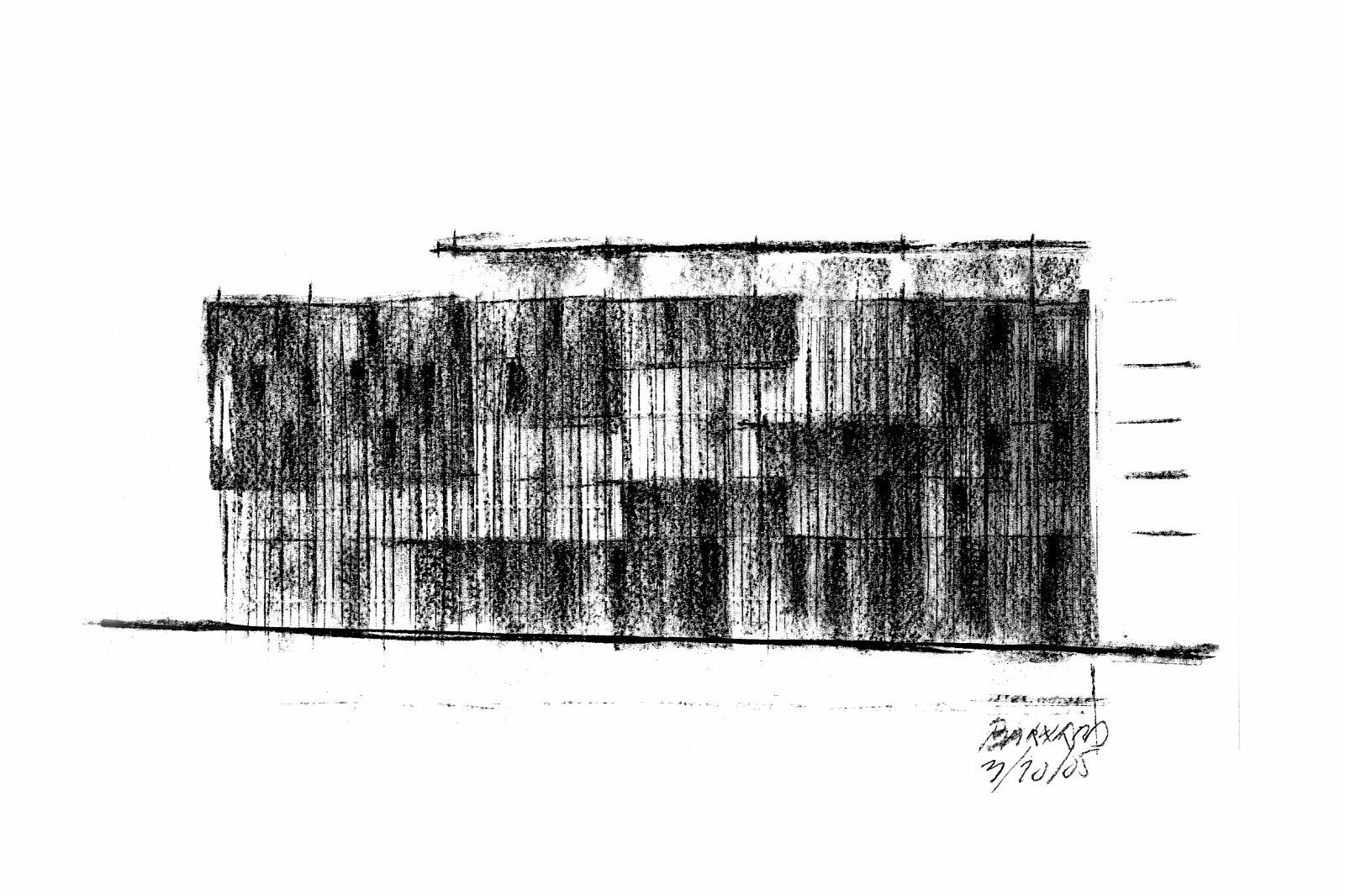 A series of slipped atria provide views through the building, visually and physically linking the diverse elements of the program. Vertically patterned glass marks the primary circulation routes.