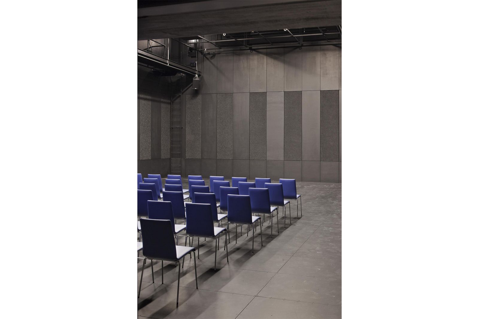 The black box theater with its mobile risers supports multiple configurations and a variety of performances.
