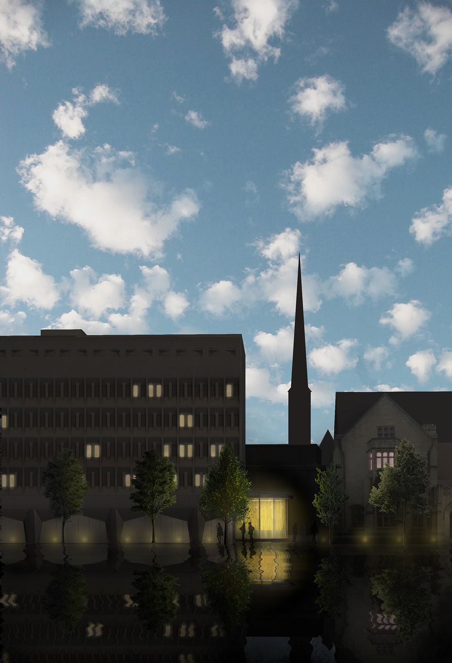 Set in a courtyard defined by Brutalist and Gothic architecture, the Center contrasts the static opacity of masonry with a luminous energy-efficient glass skin.